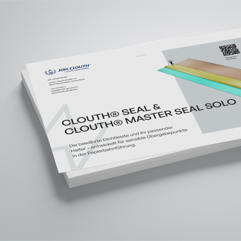 Die CLOUTH® SEAL reduziert Bahnabrisse und sorgt für mehr Prozesssicherheit sowie erhöhte Effizienz. Mit unserem CLOUTH® MASTER SEALS SOLO haben wir die perfekte Kombination zwischen maximaler Anlagenverfügbarkeit und Nachhaltigkeit geschaffen.